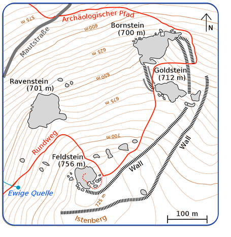 The Bruchhauser rocks are not only impressive because of their natural features. Archaeological relics date back to the Iron Age some 2,500 years ago. During this time, people built a huge fortress with an eastern orientation in front of the Bruchhauser Stones. The remains of this fortress are recognizable today in the form of a double rampart in the terrain and represent the oldest rampart complex in the Sauerland. Further research in the surrounding area shows that the fort was probably built within a settlement landscape of small individual farmsteads and served as protection against enemies. In addition to the protective function, there are now growing indications that the Bruchhauser Steine may also have served as a so-called cult site. A further, so far unsolved question is the assignment of the settlement to an ethnic group. Numerous finds indicate that the people had connections to southwestern Celtic tribes. This theory was corroborated by the discovery of a Celtic bracelet a few years ago. Visitors can admire a replica of this magnificent bracelet in the Info Center.