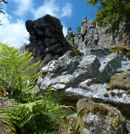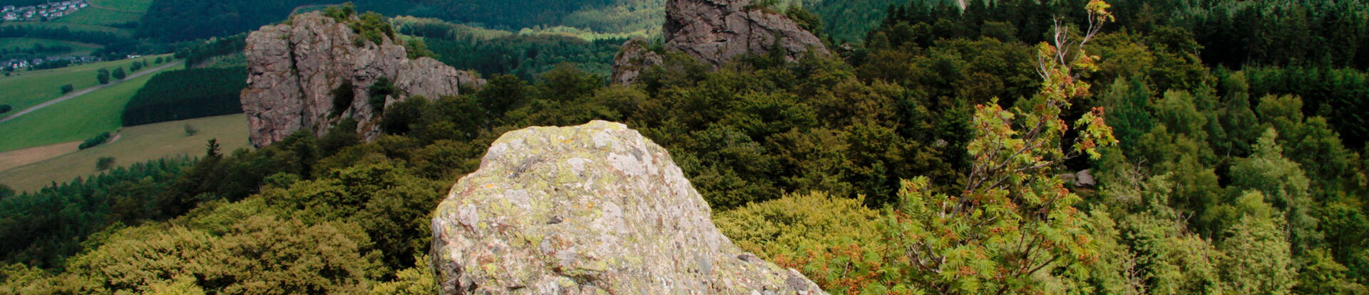 They consist of quartz porphyry, a particularly hard volcanic rock that was gradually shaped from its softer shell of Devonian clay shales by erosion processes over millions of years. Today, the mighty rocks are an imposing testimony to the submarine volcanic activity in the prehistoric times of the Sauerland region. But the Bruchhauser rocks are not only geologically a worthwhile excursion destination. As a retreat area of arctic-alpine plants they belong to the rare locations of plants (so-called "relict species") from the ice age that are no longer native to us. Only here - under extreme climatic conditions - they could survive until today and were not displaced by warm-age plants.