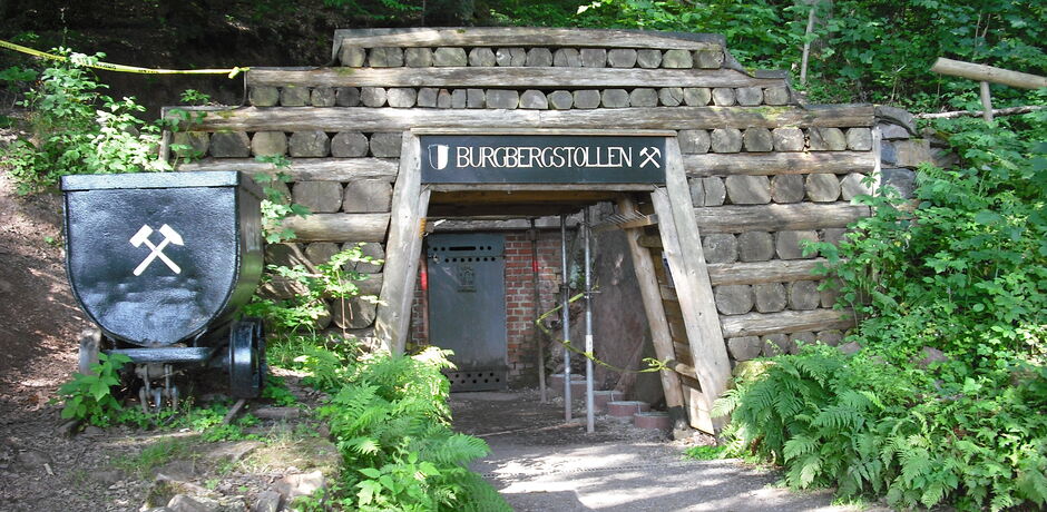 In Battenberg, mining of manganese ore, also called "brownstone", was carried out until the 18th century. The ore was formed around 290 million years ago during the folding of the Rhenish Slate Mountains. In the "Burgbergstollen" visitor mine, visitors can experience mining up close in a gallery that has only been fortified with a few extensions and has been preserved in its original state.