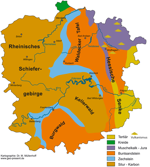 The Adorf cliff at the Martenberg is the type locality for the internationally valid division of the Devonian - it marks the boundaries of the "Adorfer Stufe". In various quarries the transgression of the Zechstein sea to the mainland is exposed - it marks the stratigraphic boundary between the Carboniferous and Permian geological ages.