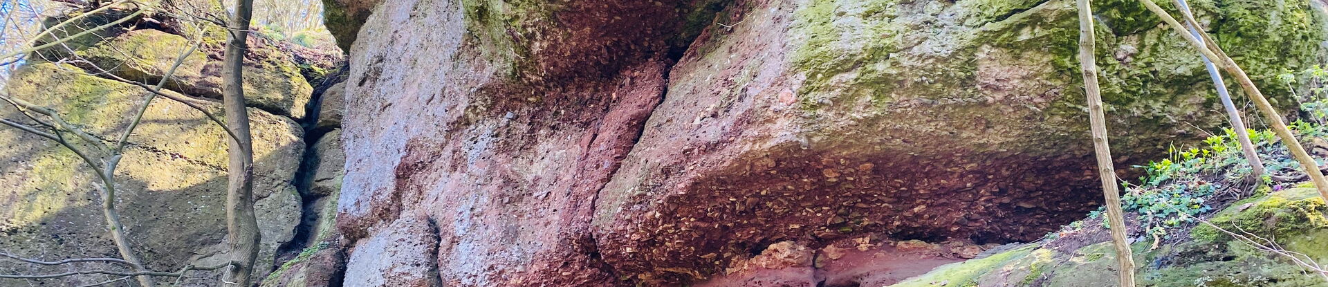 Especially at the beginning and at the end of each ice age, when the climate changed, the Eder was active and could deepen strongly into the underground. Frost weathering provided large amounts of debris that served as "erosion weapons" and promoted incision. Thus, river work created the escarpment. At the Ederstede itself, rocks from the Zechstein period (Permian, about 255 million years before today) are exposed. Above 5-6 m of finely bedded and about 1.5 m of obliquely bedded gravelly sandstones ("Geismar strata") in the lower part of the cliff slope, coarse conglomerates with oblique bedding, clay pebbles and a typical roof tile bedding of the gravels follow up to the top of the terrain. These are deposits of overgrown river systems at the eastern edge of the slate mountains, which occur here - inland from the coast of the Zechstein Sea - instead of marine or lagoonal sediments.