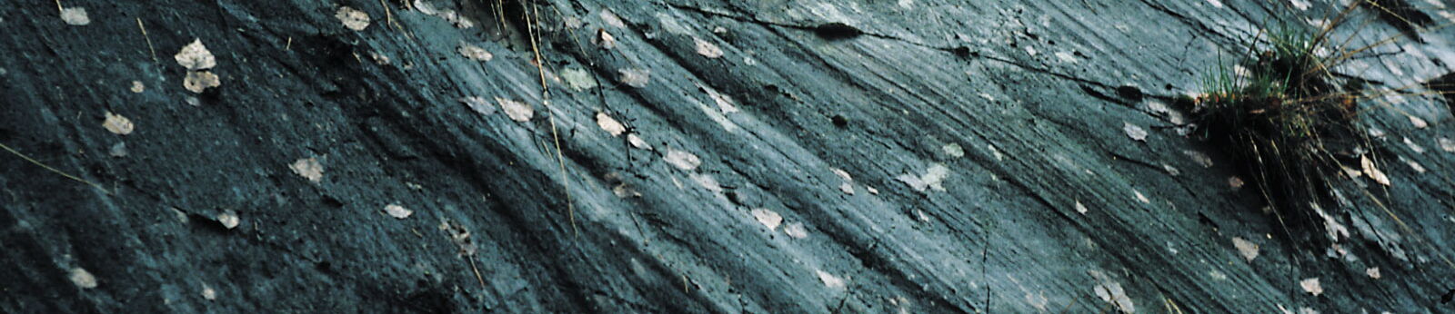 The primeval plant remains drifting on the seafloor left lines in the ground, on which sediment layers were laid down again. Over millions of years, these sediments solidified with the plant trace fossils preserved in them to form solid rock.