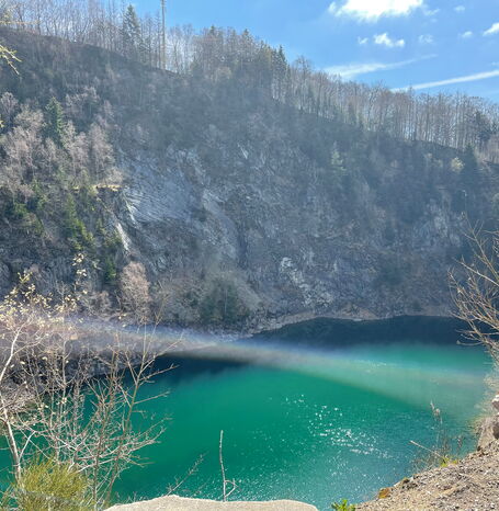 If you want to visit the mountain lake, you should be free from giddiness and careful, because not all areas on the steep walls are secured. From the center of Silbach, follow the gallery path to the top of the Meisterstein and you can look down into the turquoise-blue lake from the top!