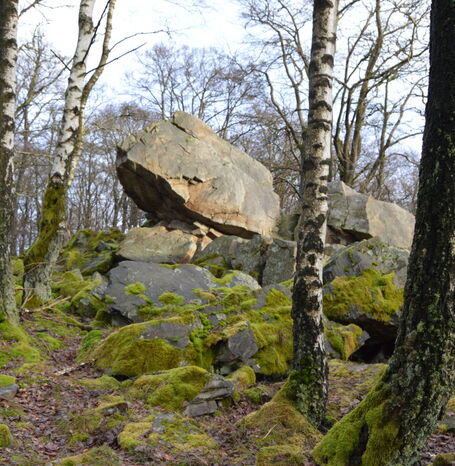 Along the ridge, the rock also known as Kellerwald quartzite, which is particularly resistant to weathering, regularly comes to the surface. This Kellerwald quartzite, typical of the Kellerwald, is part of a long but narrow rock train that extends from the Westerwald, through the Kellerwald, into the Harz Mountains and beyond. The rock finds its origin in the Lower Carboniferous (358.9 - 298.9 million years ago) in a former basin area, in which once ablation material collected. In subsequent times, these sediments were fossilized, metamorphically overprinted by pressure and heat, and tectonically uplifted.